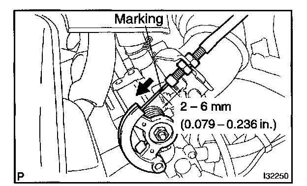 a. Push the wire into the cable so as not to move the throttle link and put a mark on the position shown in the illustration.
