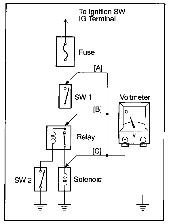 This check can be done with a test light instead of a voltmeter.