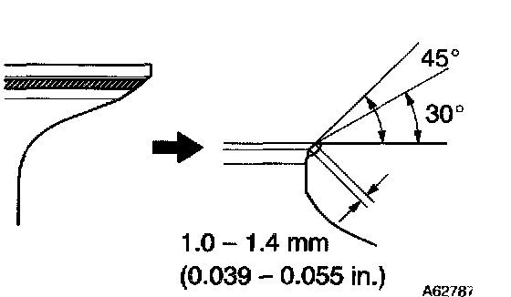 3 Check that the seat contact is in the middle of the valve face with the width between 1.0 - 1.4 mm (0.039 - 0.055 inch).