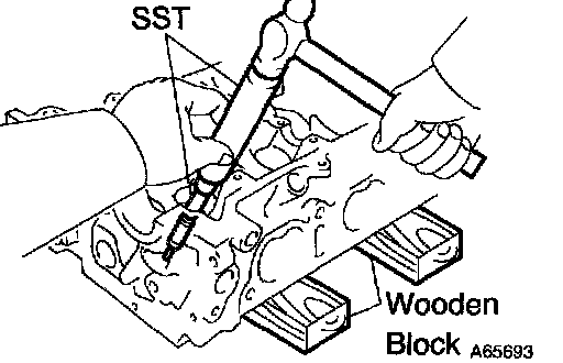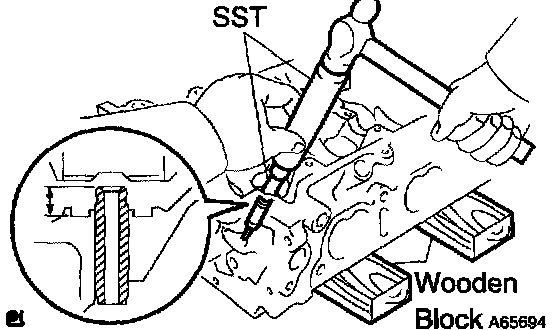 c. Using SST, tap out the valve guide bushing.