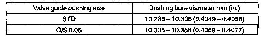If the bushing bore diameter of the cylinder head is greater than 10.306 mm (0.4058 inch), machine the bushing bore to the dimension of 10.335 - 10.356 mm (0.4069 - 0.4077 inch) to install a over size valve guide bushing.