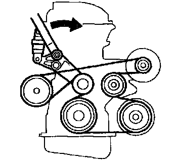 a. Turn the V-ribbed belt tensioner slowly clockwise and loosen it. Then, remove the fan and generator belt V and put back the V-ribbed belt tensioner little by little and fix it quietly.