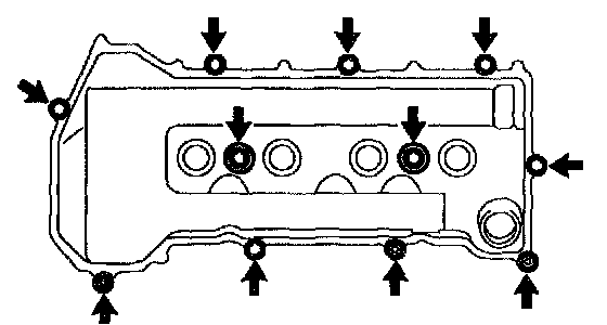 ^ Install the cylinder head cover within 3 minutes after applying seal packing.