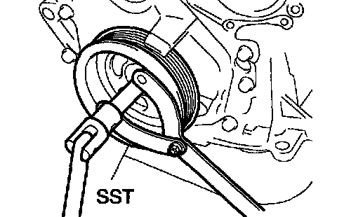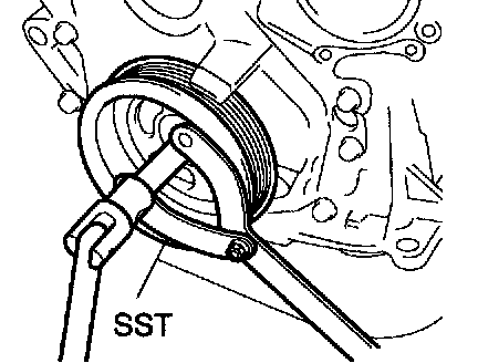 a. Using SST, remove the pulley bolt.