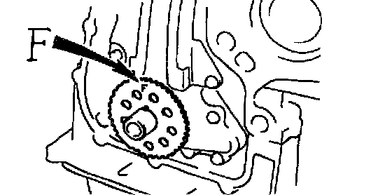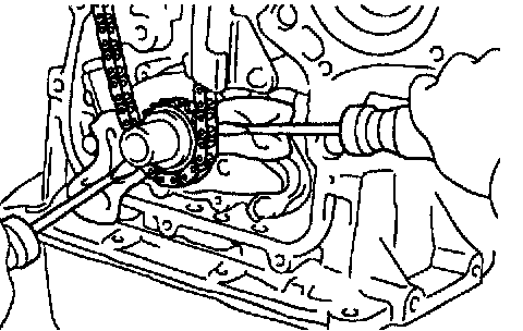 a. Remove the timing chain with the crankshaft timing gear prying screwdrivers as shown in the illustration.