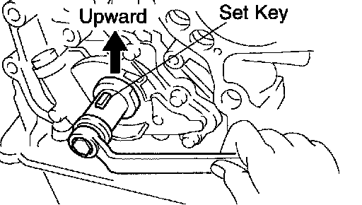 2 Using a crankshaft pulley bolt, turn the crankshaft and set the set key on the crankshaft upward.