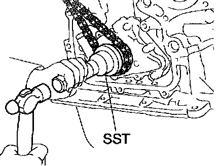 c. Using SST, install the crankshaft timing sprocket.