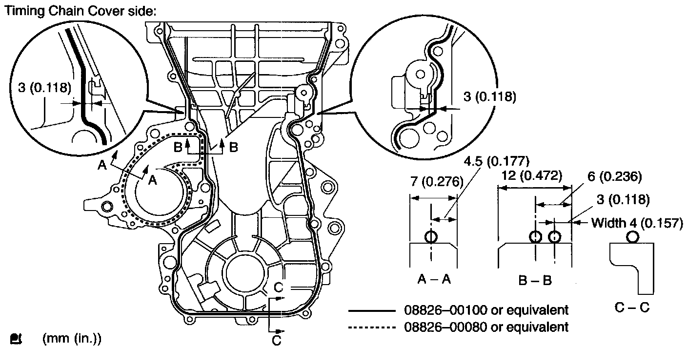b. Apply seal packing in the shape of bead (Diameter 3.5 mm - 4.5 mm (0.1379 - 0.177 inch)) consequently as shown in the illustration.