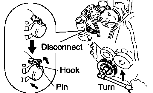NOTICE: When installing the tensioner, set the hook again if the hook release the plunger.