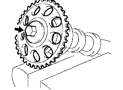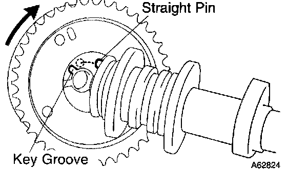 CAUTION: Be sure not to turn the camshaft timing gear to the retard angle side (to the right angle).