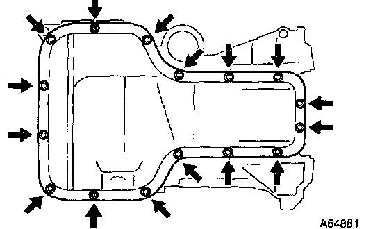 ^ Install the oil pan within 3 minutes after applying seal packing.
