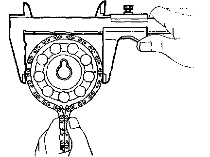 NOTICE: Vernier calipers must contact the chain rollers for measuring.