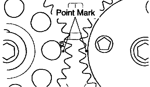 1 Turn the hexagonal wrench head portion of the camshafts, and align the point marks of the camshaft timing gears.