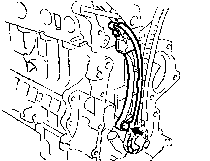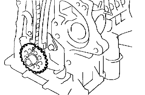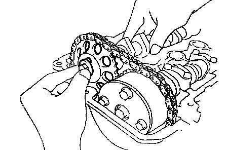 m. As shown in the illustration, install the chain on the camshaft timing gear, with the painted mark aligned with the timing mark on the camshaft timing gear.