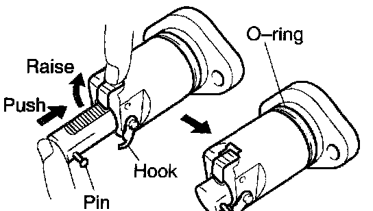 a. Check an O-ring is clean, and set the hook as shown in the illustration.