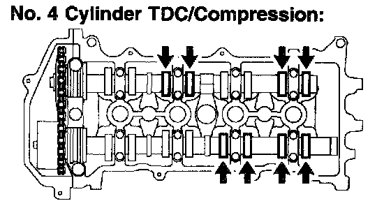 c. Turn the crankshaft 1 revolution (360°) and set No. 4 cylinder to TDC/compression.