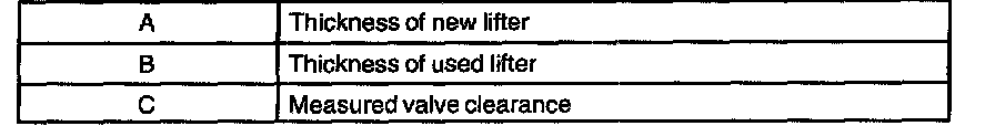 l. Calculate the thickness of a new lifter so that the valve clearance comes within the specified value.