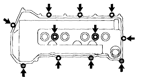 ^ Install the cylinder head cover within 3 minutes after applying seal packing.