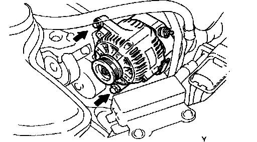 d. Remove the 2 bolts and alternator.