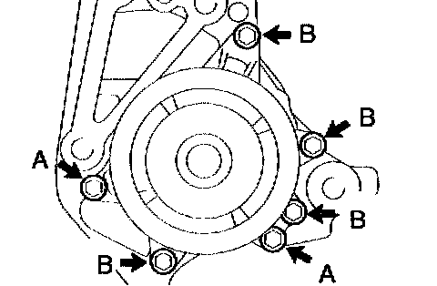 b. Install the water pump with the 6 bolts.