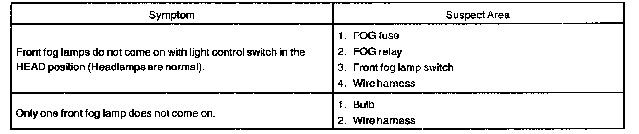Problem Symptoms Table - Front Fog Lamp: