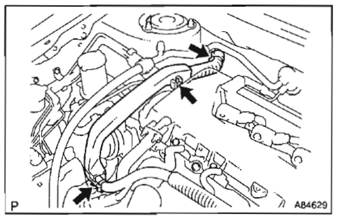 a. Remove the 2 nuts installing the suction hose sub-assembly.