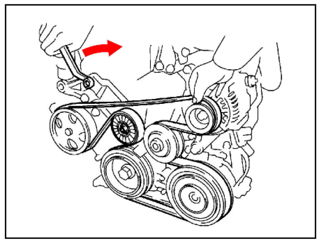 a. Turn the drive belt tensioner clockwise to relieve tension on the belt, and then remove the belt.