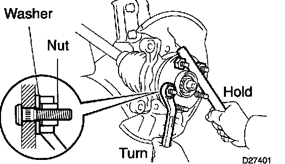 a. Install a washer and nut to a new LH hub bolt as shown in the illustration.