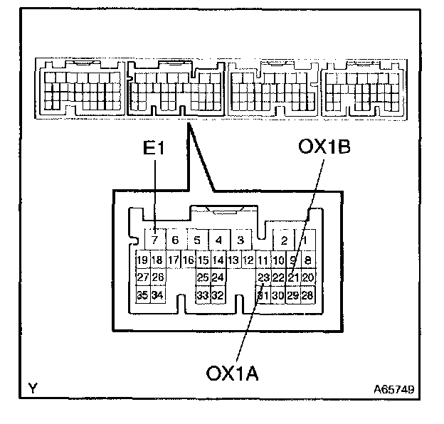 a. Connect the hand-held tester to the terminal 23 (OX1A) <-> 7 (E1) and 21 (OX1B) <-> 7 (E1) of the ECM.