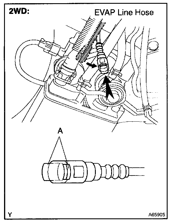 a. Disconnect the EVAP line hose from the charcoal canister.