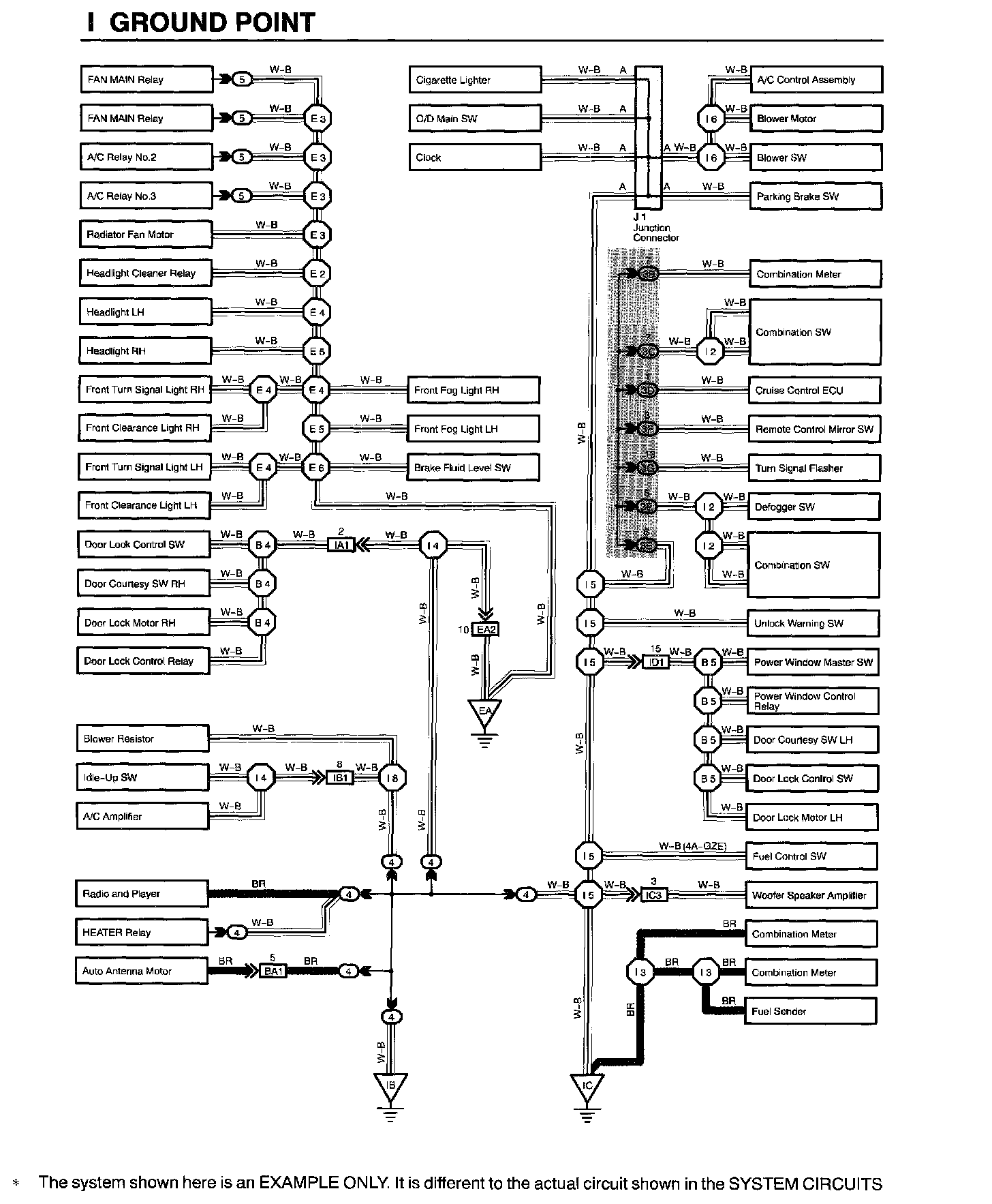HOW TO READ GROUND POINTSThe ground points circuit diagram shows the connections from all major parts to the respective ground points. When troubleshooting a faulty ground point, checking the system circuits which use a common ground may help you identify the problem ground quickly. The relationship between ground points ([EA], [IB] and [IC]) can also be checked this way.