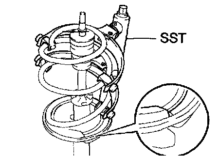 b. Using SST, compress the front coil spring LH.