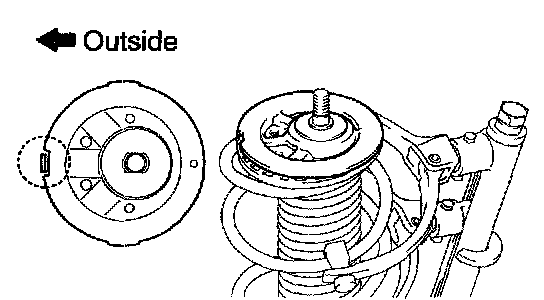 f. Install the front coil spring seat upper LH to the shock absorber assy front LH with the mark facing the outside of the vehicle.