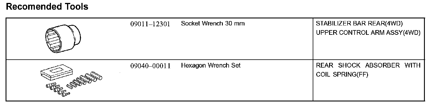 Rear Suspension - Recommended Tools Part 1:
