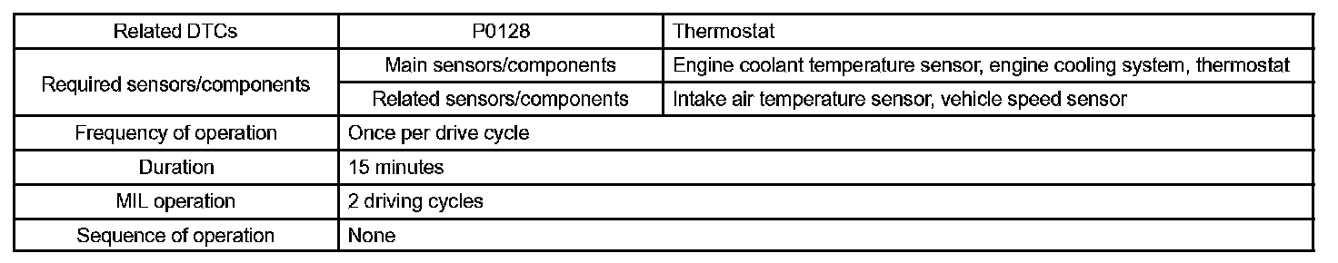 DTC P0128 COOLANT THERMOSTAT (COOLANT TEMPERATURE BELOW THERMOSTAT REGULATING TEMPERATURE)HINT: This is the purpose of the "thermostat" malfunction detection.