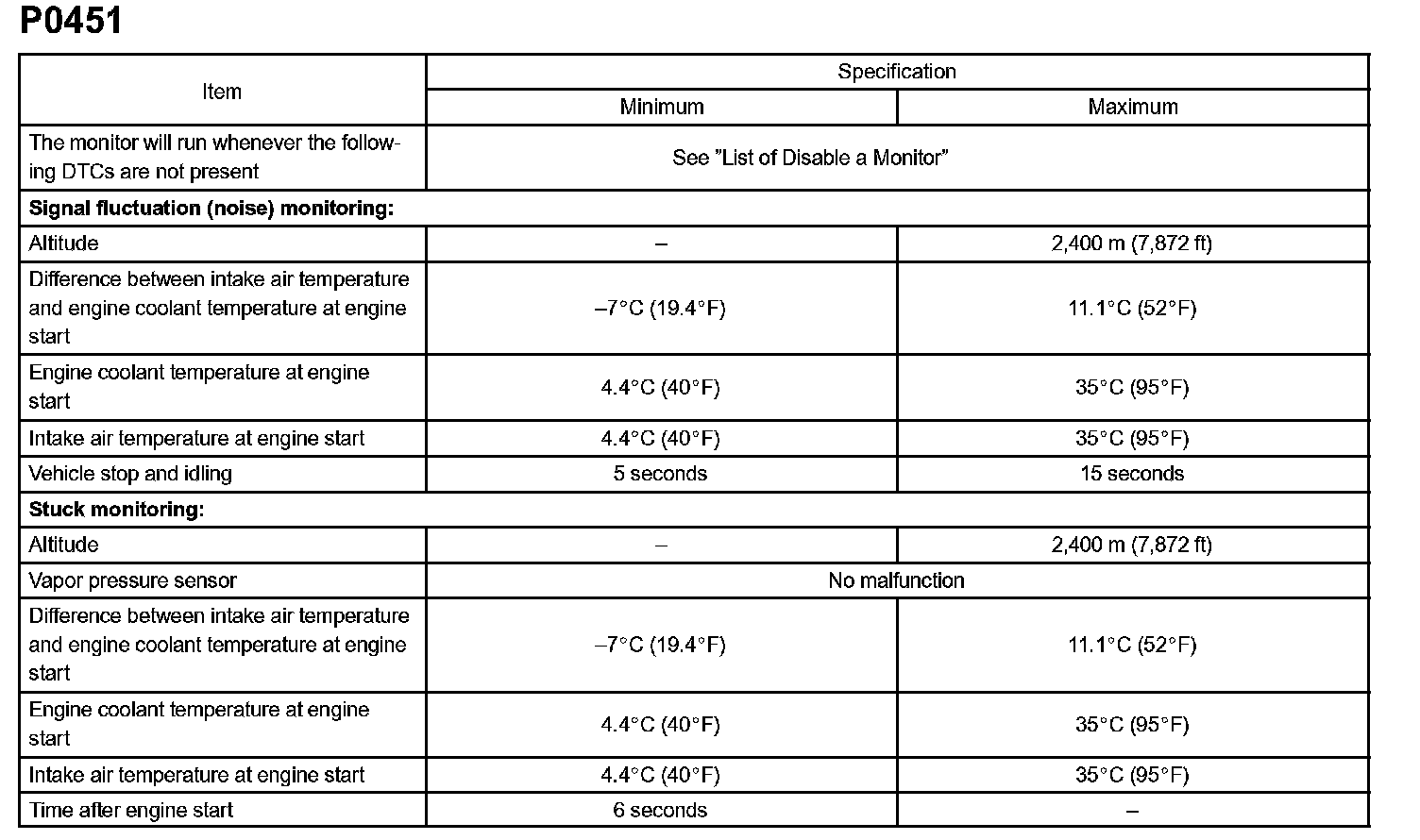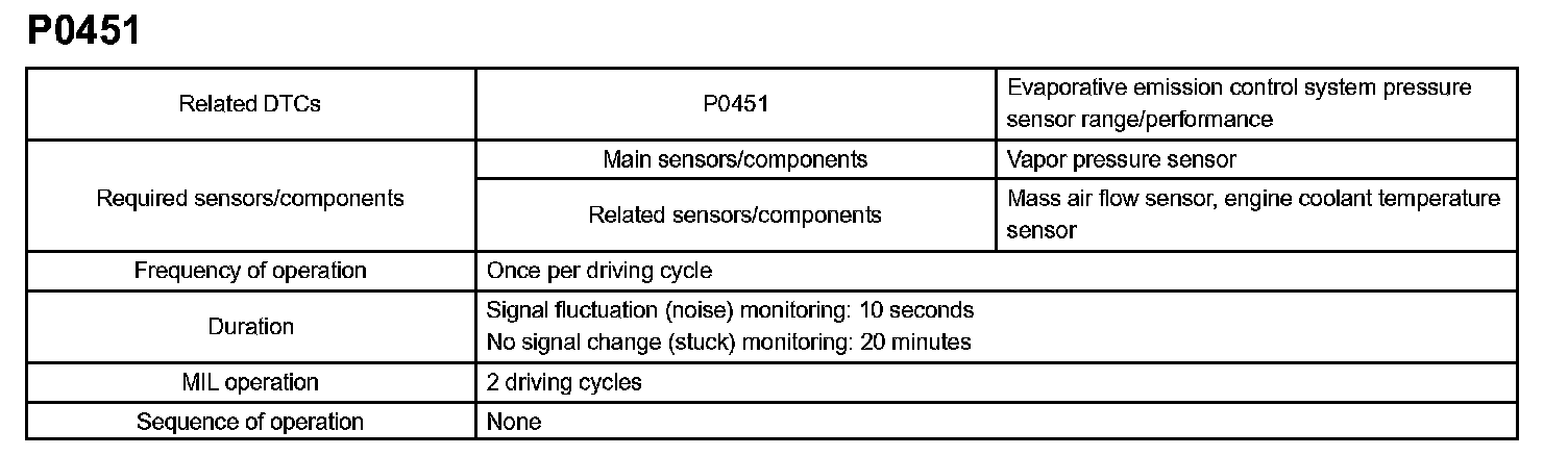 DTC P0451 EVAPORATIVE EMISSION CONTROL SYSTEM PRESSURE SENSOR RANGE/PERFORMANCEMONITOR DESCRIPTION