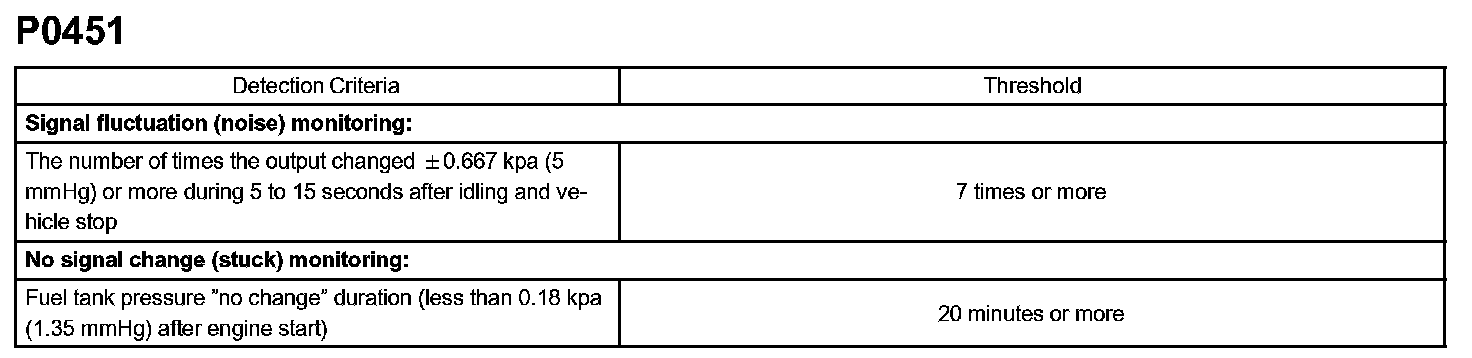 For this DTC P0451, the ECM checks for a "noisy" sensor or a "stuck" sensor.
