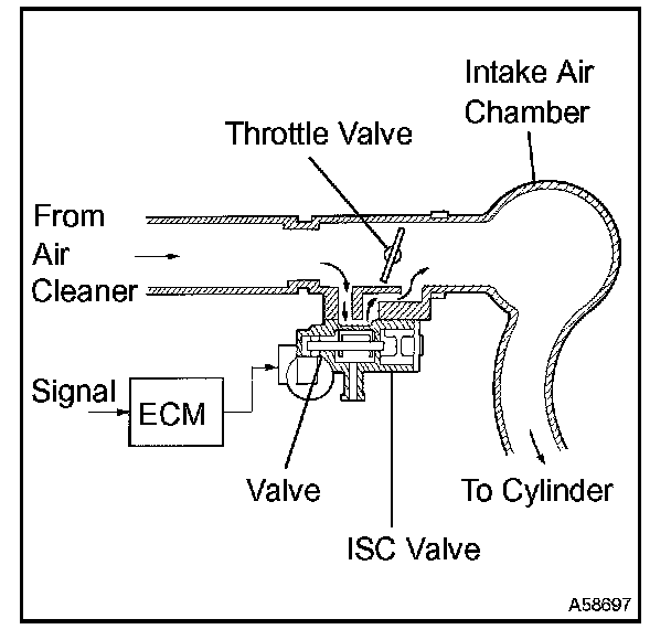 The ECM operates the ISC valve only to perform idle-up and provides feedback for the target idling speed.