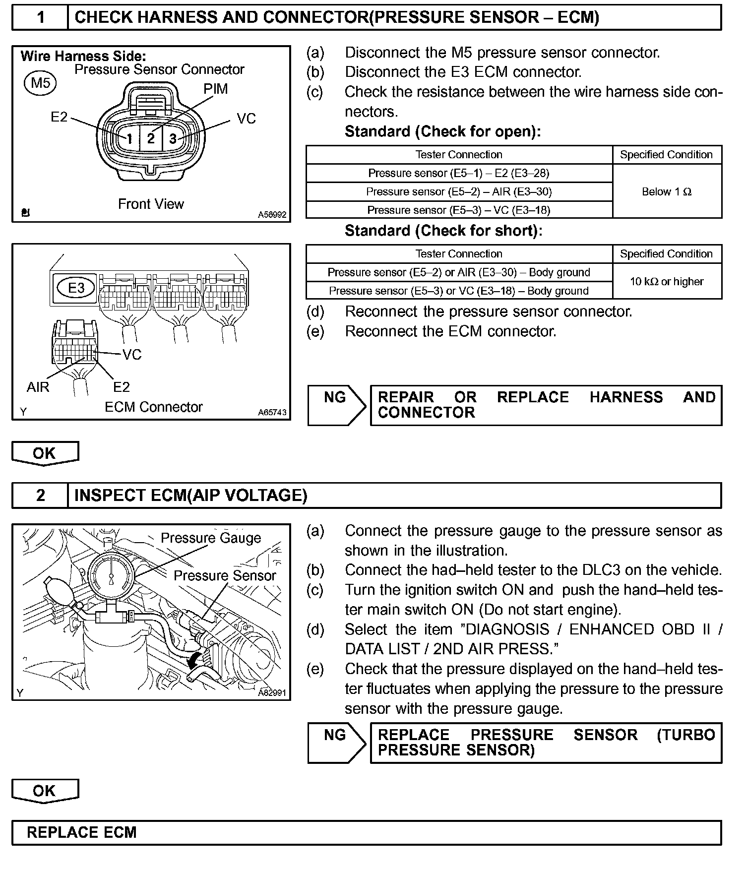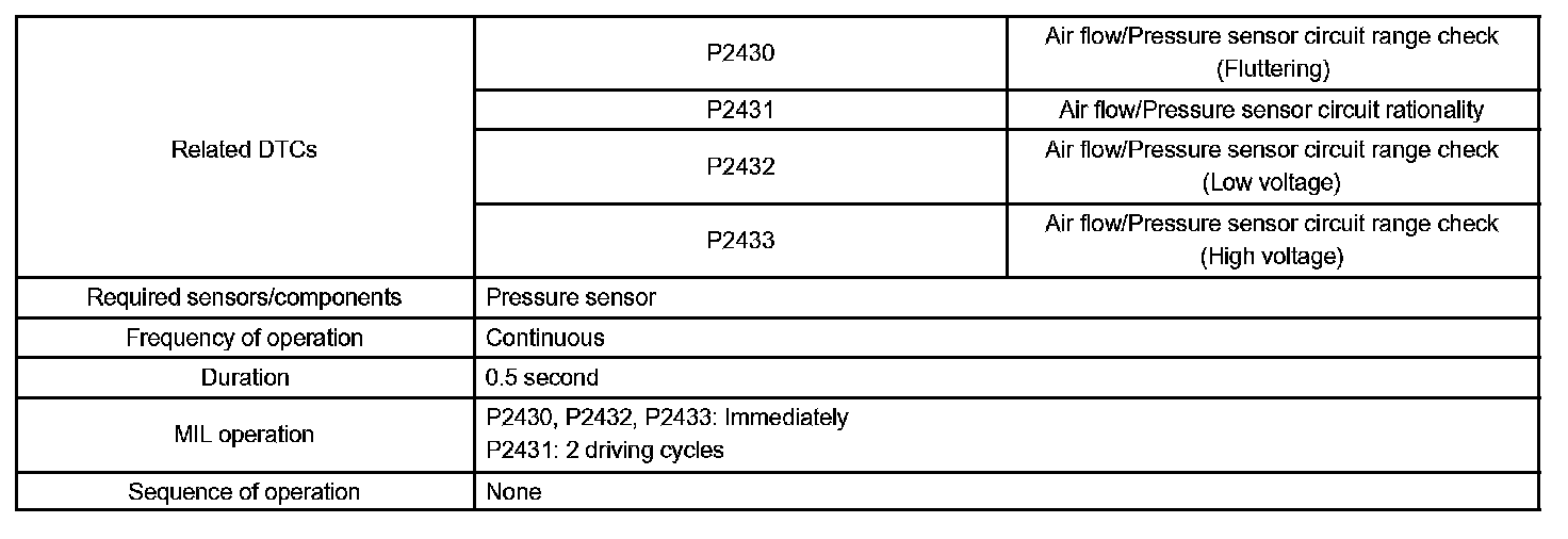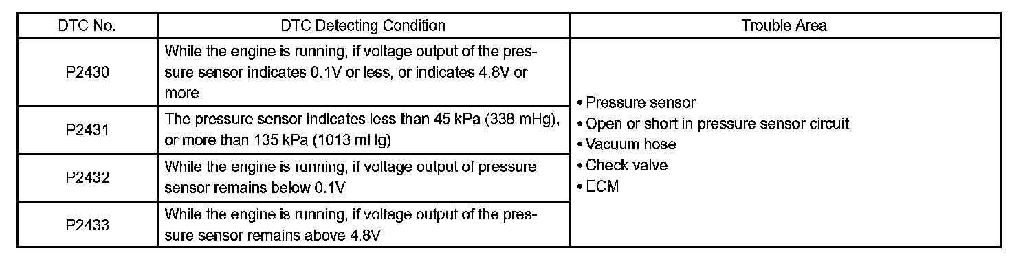 If there is a defect in the sensor or the sensor circuit, the voltage level will deviate from the normal operating range, the ECM interprets this deviation as a defect in the pressure sensor circuit and sets a DTC.