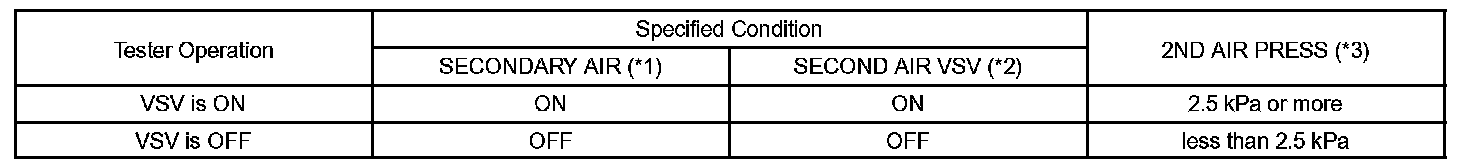 *3: Means the difference between the air pressure inside the air pressure sensor and the atmospheric pressure. When the pressure inside the secondary air injection system is equal to the atmospheric pressure, the hand-held tester displays "0 kPa".