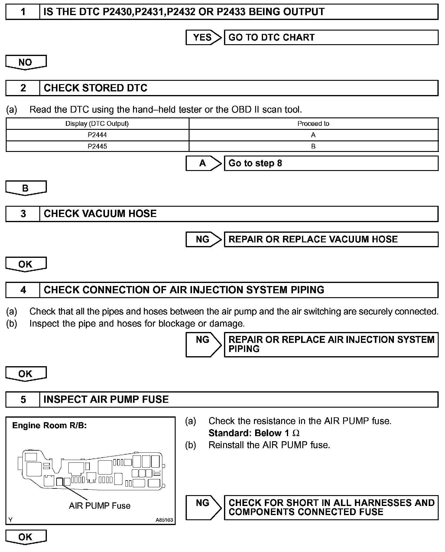 DTC P2445 SECONDARY AIR INJECTION SYSTEM PUMP STUCK OFF BANK 1CIRCUIT DESCRIPTION