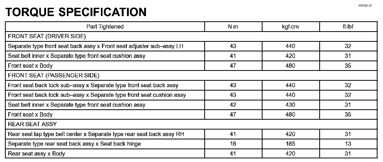 Seat - Torque Specification: