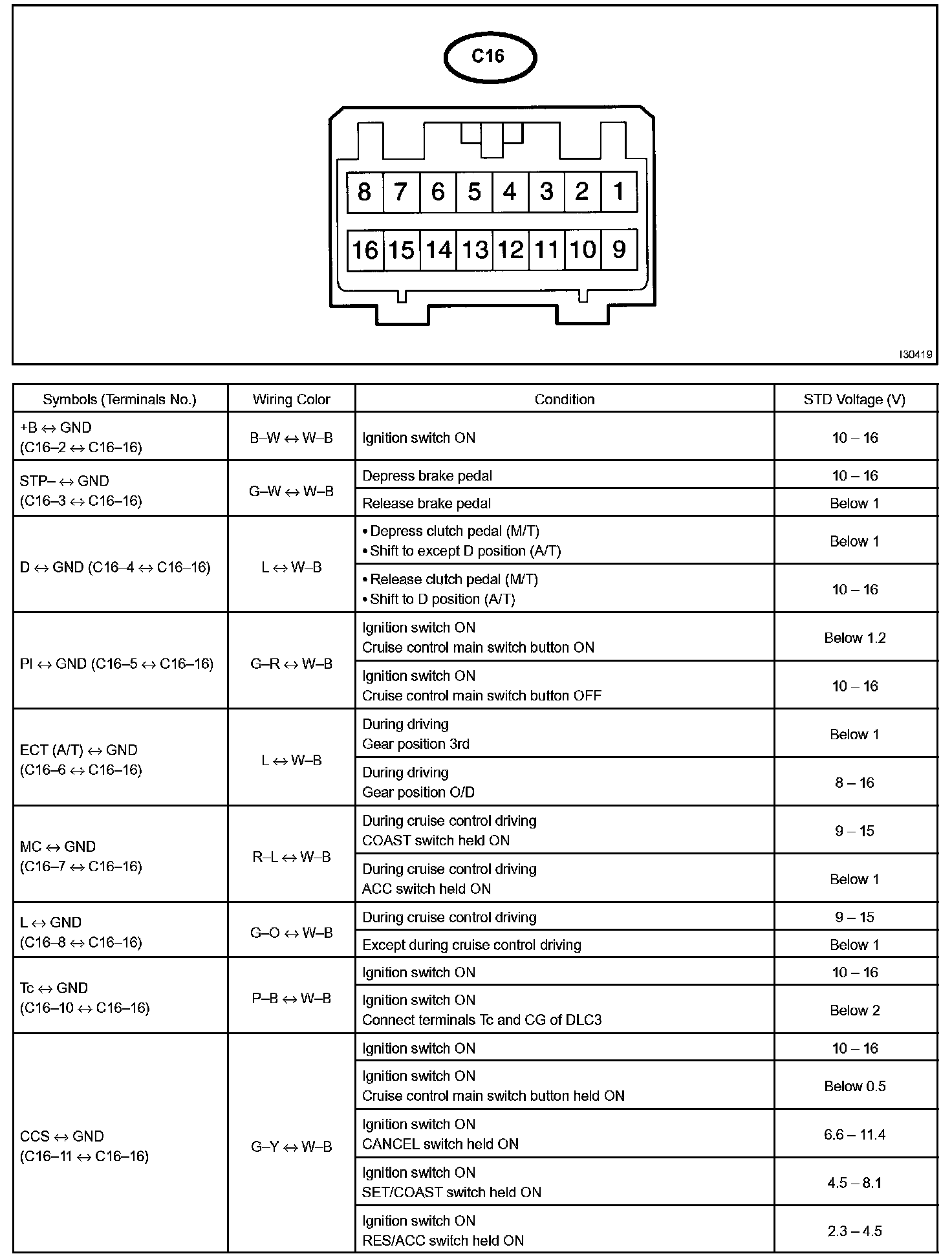 Pinout Values and Diagnostic Parameters