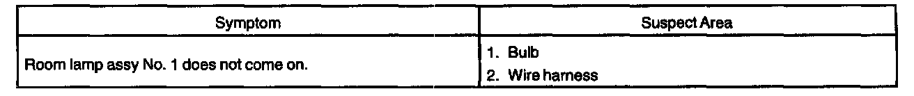 Problem Symptoms Table - Room Lamp: