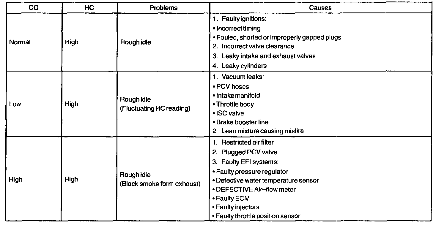 e. If the CO/HC concentration does not comply with regulations, troubleshoot in the order given in image.