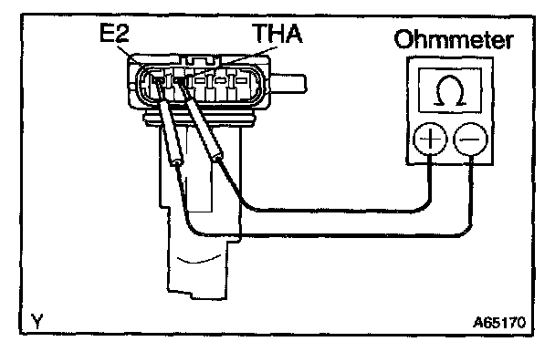 Using an ohmmeter, measure the resistance between terminals THA and E2.