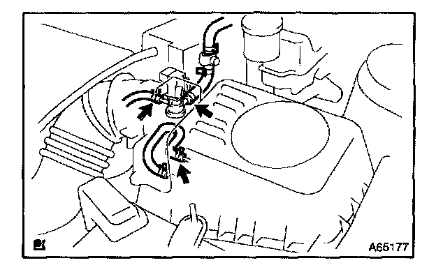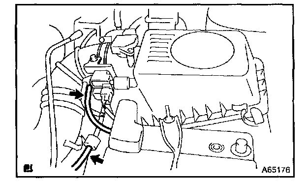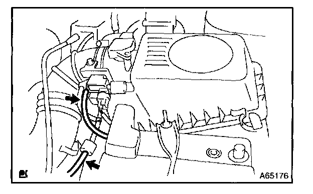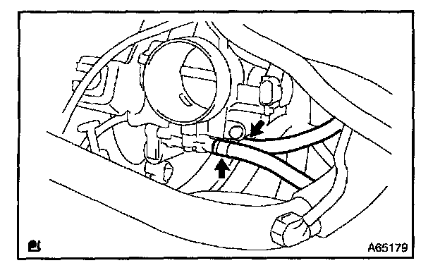 a. Disconnect 2 vacuum hoses as shown in the illustration.