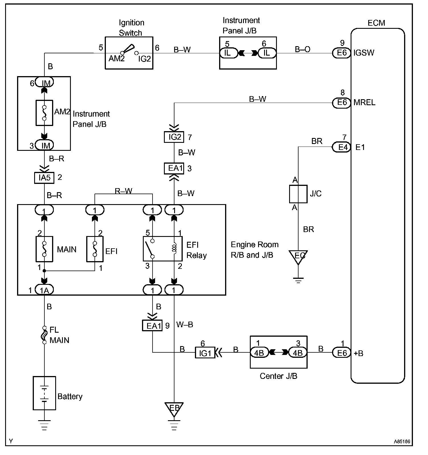 This signal causes current to flow to the coil, closing the contacts of the EFI relay and supplying power to terminal +B of the ECM.