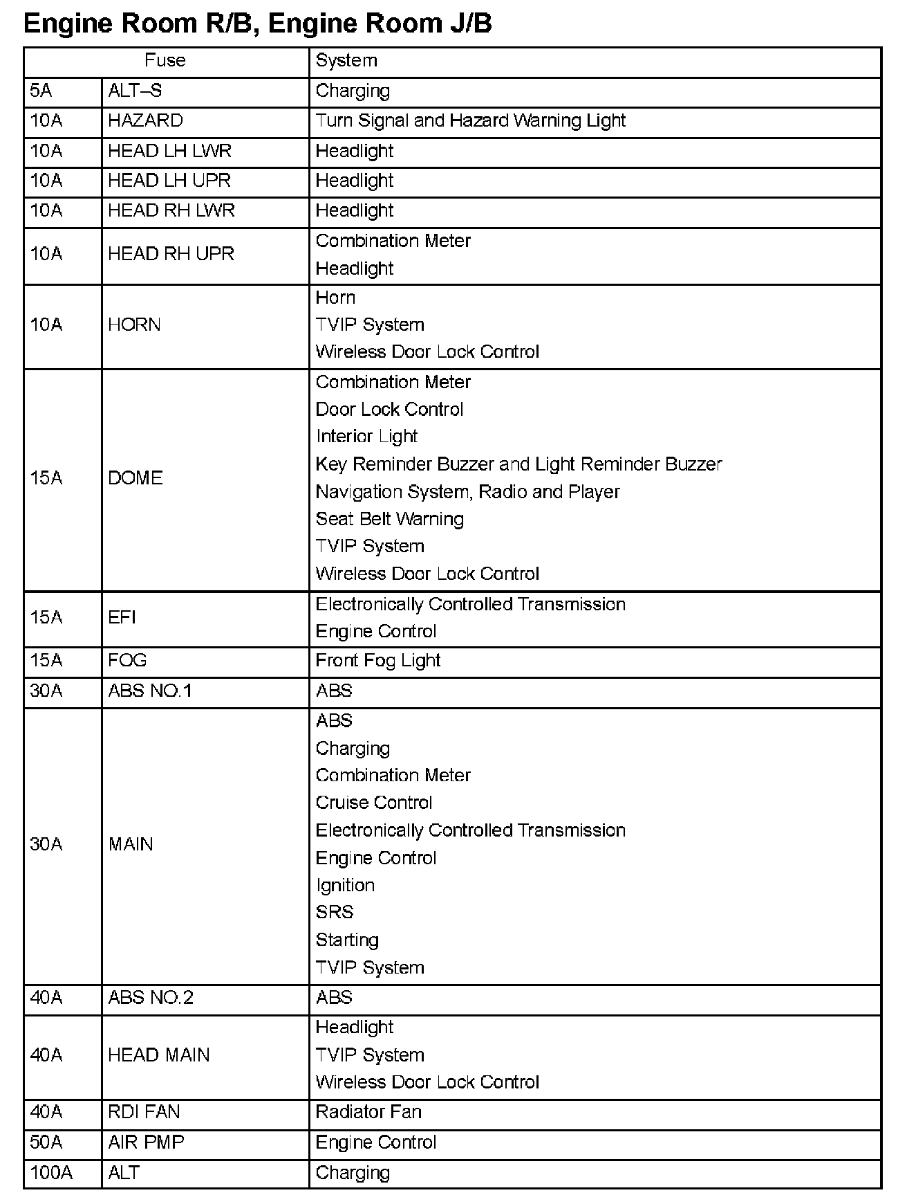 Engine Room R/B, J/B: