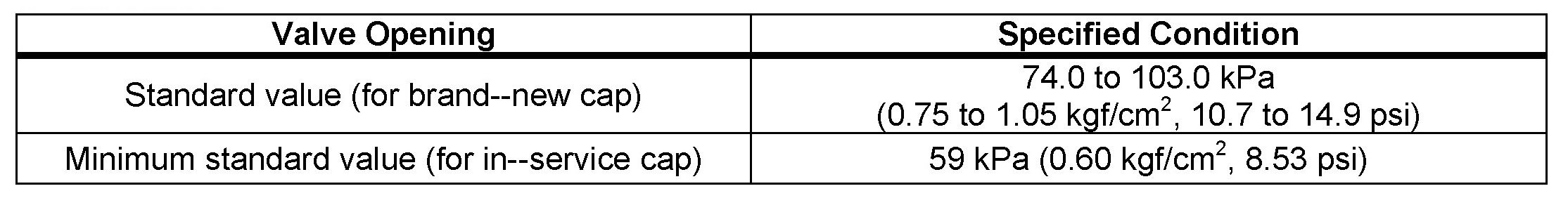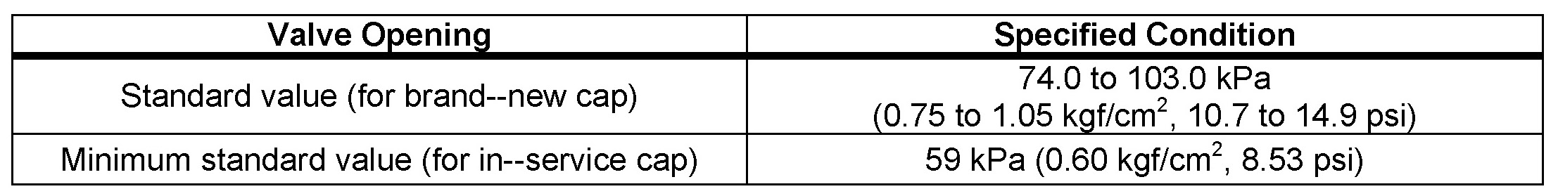 Stop pumping when the valve opens and read the gauge. The gauge must be within the standard values listed below when the pressure valve opens. The cap is considered OK when the pressure holds steady or falls very slowly, but holds within the standard values listed below for one minute.
